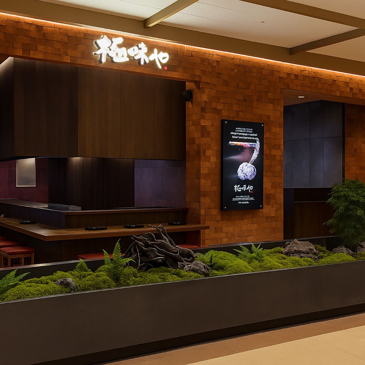 While maintaining the brand’s signature color palette of orange and red, we refined it into a more sophisticated, metropolitan expression. Locally crafted materials such as textured tiles and earthen walls were used throughout, introducing a new interpretation of Japanese aesthetics within the Thai context.