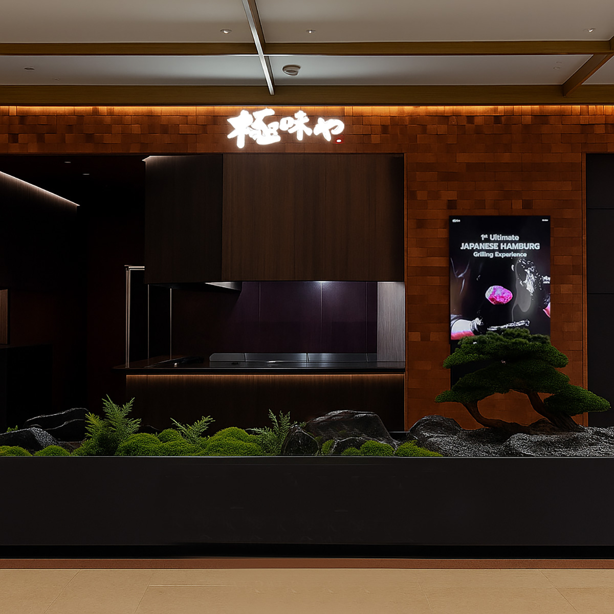 KIWAMIYA is known for its unique style of serving premium Wagyu hamburgers and steaks rare, allowing guests to sear them to their preferred doneness on a personal iron plate. The brand harmonizes the quality of Wagyu beef with the enjoyment of the cooking experience itself.